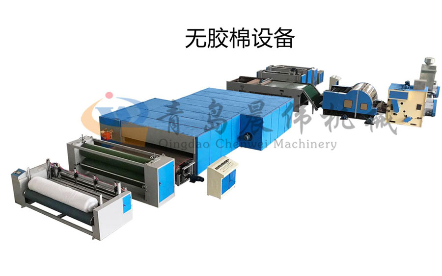 無膠棉生產(chǎn)線生產(chǎn)的無膠棉手感柔順、回彈好、透氣性強(qiáng)、耐水洗,主要適用與防寒服裝、睡袋、床上用品沙發(fā)、空氣過濾等。