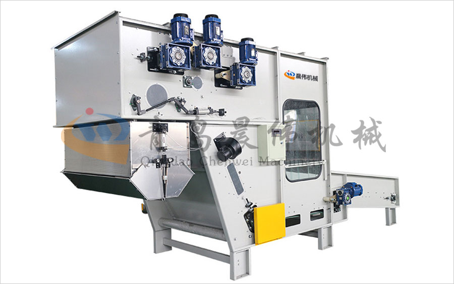 將各種等級(jí)整包或半包料進(jìn)行初步打開,無(wú)需人工抖棉,降低勞動(dòng)強(qiáng)度,通過(guò)稱重系統(tǒng)PLC計(jì)算進(jìn)行準(zhǔn)確配比,均勻平鋪到長(zhǎng)簾上。