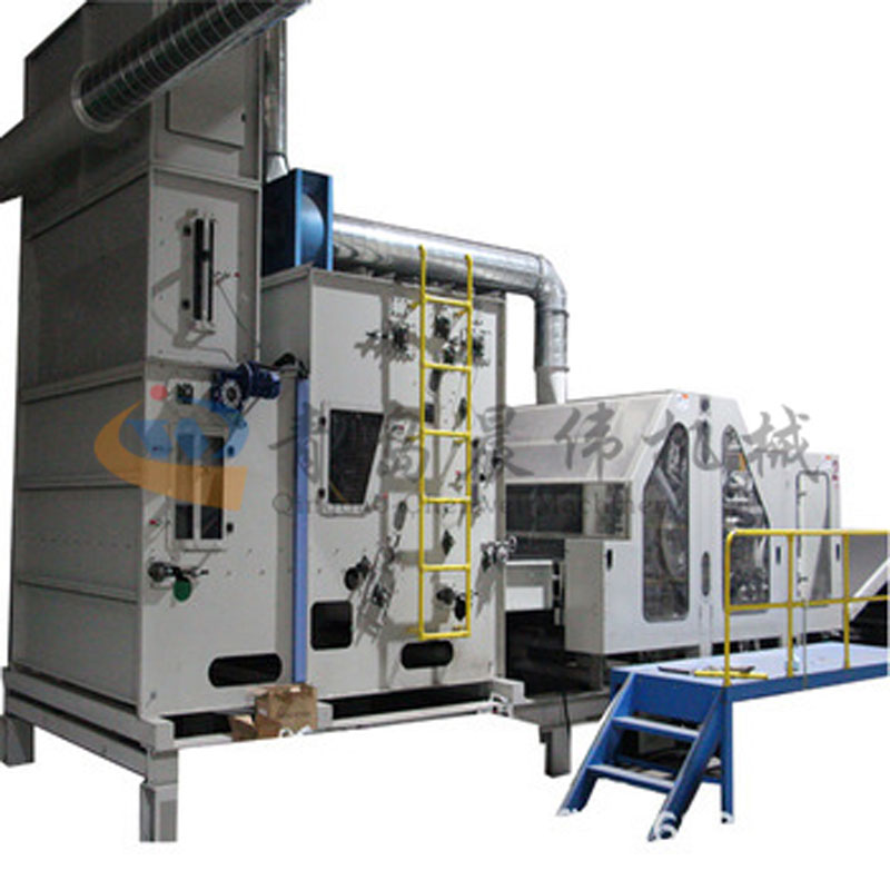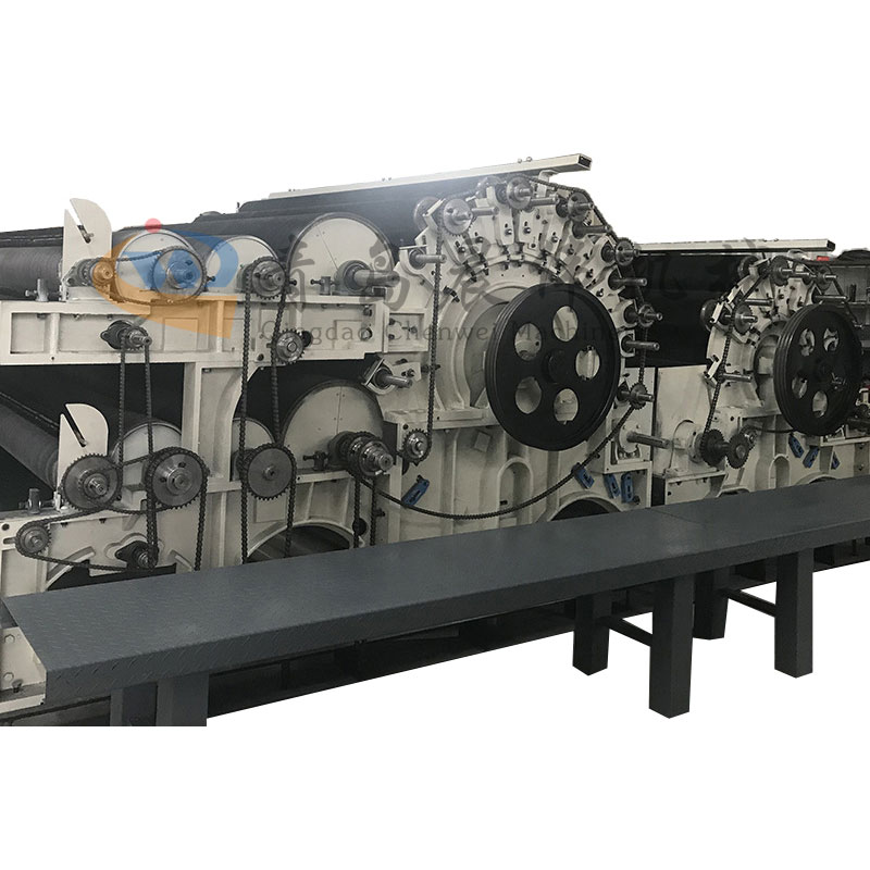 雙錫林梳理機主要是將前道工序棉網層進行單纖維狀態(tài)分散過程,并且等寬均勻的輸出到鋪網機,雙錫林梳理機適用于針刺,水刺等短纖維無紡布生產線核心部位,一般與鋪網機配合使用,也可以直接鋪網使用。